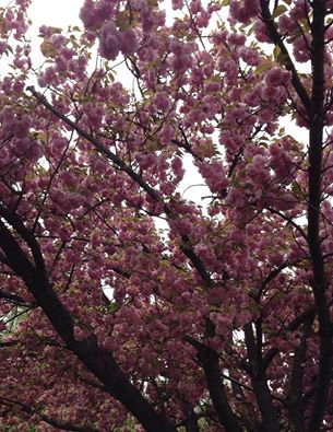 Oh, that puppy face! ❤ Love the beautiful blooming trees!