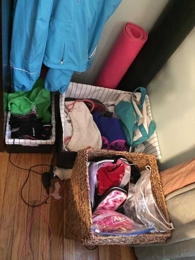 1.  Bags – different activities require different gear.  Therefore, I have these things in their own bags that I can just grab and go.   I’ve got a yoga bad, a running bag, a gym bag, and a swim bag.   Might seem overkill, but it works for me.   This way when I’m heading out I can just grab the right bag.