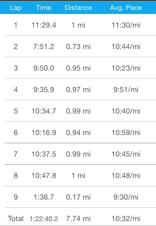 At this point, my pace was better, but not on target which I had already given up on hitting. I stopped watching my watch and scrubbed the run as a cut-down. I had nothing to do but think about all the things that went wrong with this run, what I could do in the future, and wondering why I was doing this in the first place. My main conclusion was that I really just talked myself out of being able to hit the paces before I even gave myself a chance to hit them. I need to figure out how to not let these runs mess with my mind. It’s a work in progress.