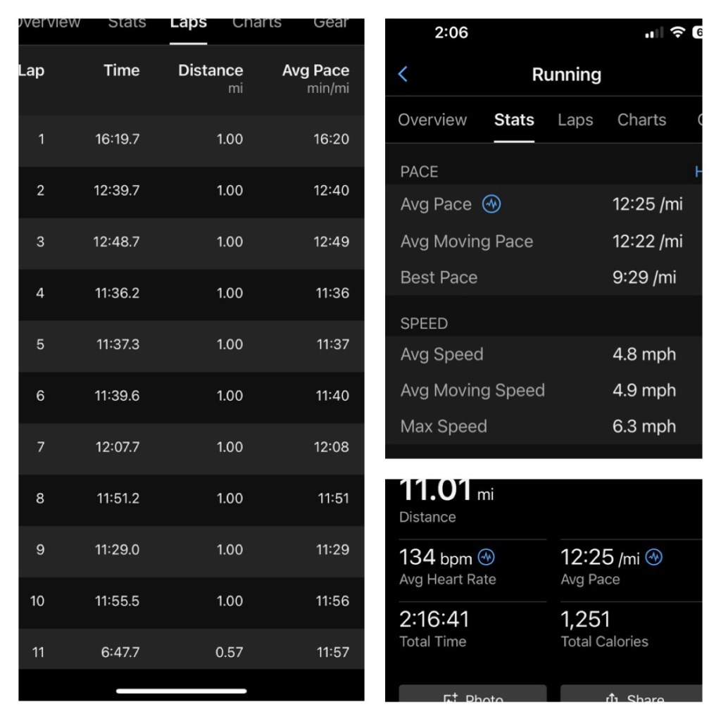 Todays run was 11 miles. It was hot today. I’ve been having some very minor low calcium symptoms .