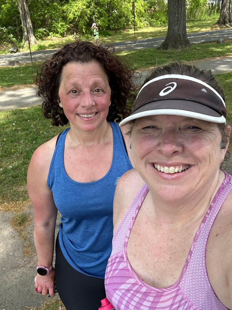 So Dawn and I set off. We had no plan or pace, but we kept each other in check…. Kept from running too fast, too slow or too much walking. We met at a park and got looped back around mile 6. I have been adding calcium/cacitriol at this point. I could tell that it was time as I was getting a few finger tingles, but nothing too bad. Took my pills and refilled water and off we went.